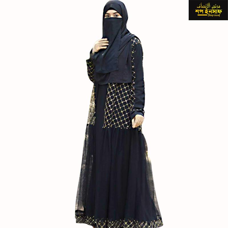All our burqas are made of the number one Dubai Cherry Georgette fabric. You will find burka design same with the photo design. But the color may be slightly different (deep/light). Because the photo taken and the color of the fabric are slightly different. All burka collection of our store is made by maintaining the quality standard