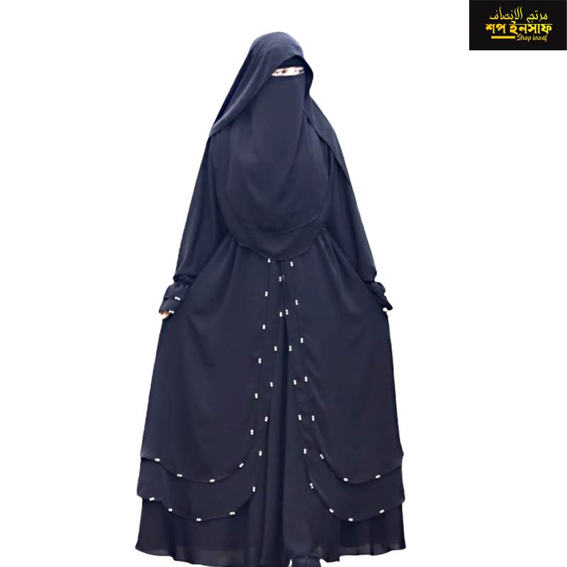 All our burqas are made of the number one Dubai Cherry Georgette fabric. You will find burka design same with the photo design. But the color may be slightly different (deep/light). Because the photo taken and the color of the fabric are slightly different. All burka collection of our store is made by maintaining the quality standard