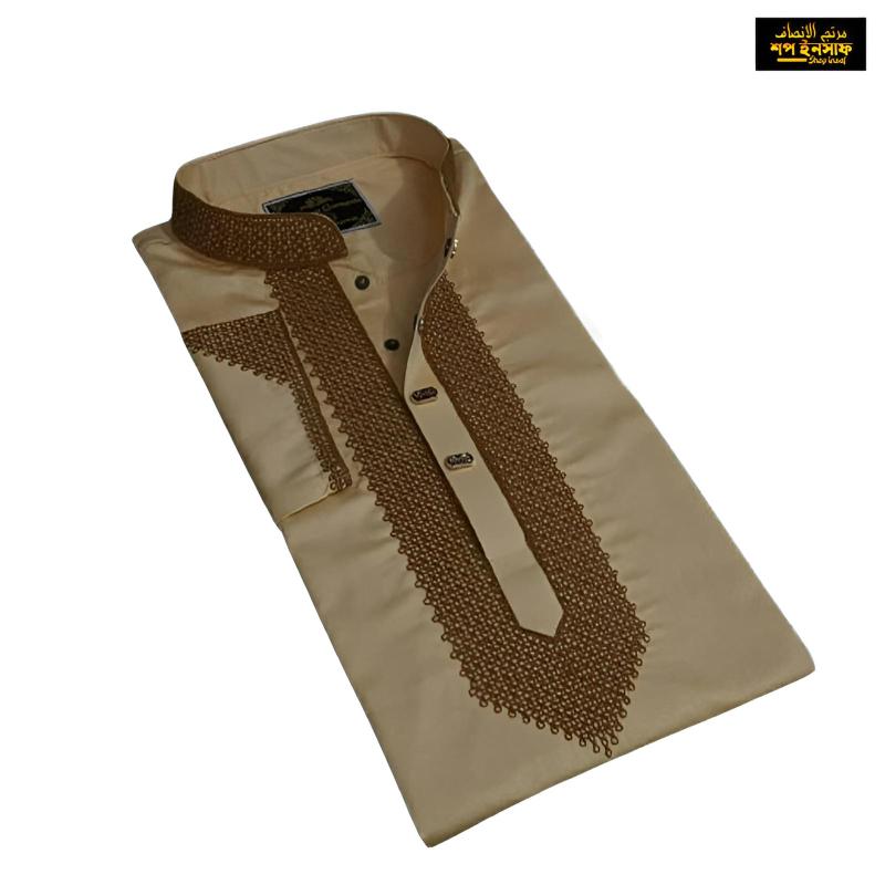 Bring a touch of tradition to your wardrobe with this Premium Panjabi. Made from 100% soft and breathable cotton, it is perfect for any occasion. The Punjabi features gorgeous designs, adding a touch of elegance to the simple yet sophisticated design. The beige color is neutral and versatile, making it easy to style. With a comfortable regular fit, it is both practical and stylish. Available in sizes 38 to 46, you’re sure to find the perfect size for you.